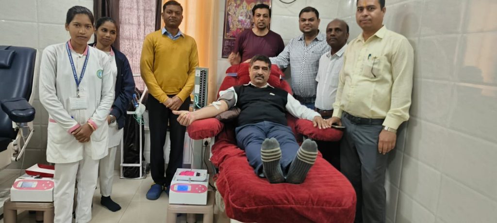 नई पहल न्यूज नेटवर्क। मनेंद्रगढ़। मानवता की सेवा का संकल्प और समाज के प्रति अपनी जिम्मेदारी को निभाते हुए रेडक्रॉस सोसायटी के प्रदेश प्रतिनिधि एवं वरिष्ठ अधिवक्ता रामनरेश पटेल ने अपना जन्मदिवस एक प्रेरक अंदाज में मनाया। उन्होंने अपने 54 वे जन्मदिन के अवसर पर केंद्रीय चिकित्सालय आमाखेरवा के ब्लड बैंक पहुँचकर रक्तदान किया। इस दौरान कांग्रेस के वरिष्ठ पार्षद अजय जायसवाल, रेडक्रास सोसायटी के जिला अध्यक्ष शैलेश जैन, आलोक अग्रवाल, सुमित अग्रवाल मौजूद थे।