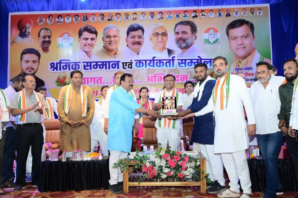 रायपुर। कांग्रेस असंगठित क्षेत्र एवं समस्या निवारण प्रकोष्ठ के द्वारा श्रमिक दिवस पर शहीद स्मारक भवन में श्रमिक सम्मान समारोह आयोजित किया गया। कार्यक्रम में प्रदेश कांग्रेस अध्यक्ष दीपक बैज ने श्रमिकों का श्रीफल, शॉल व टिफिन बॉक्स भेंटकर सम्मान किया। कार्यक्रम में पूर्व मंत्री मोहम्मद अकबर, पूर्व मंत्री सत्यनारायण शर्मा, श्रम कल्याण मंडल के पूर्व अध्यक्ष शफी अहमद ,पूर्व अध्यक्ष जिला सहकारी बैंक पंकज शर्मा ने सभा को संबोधित किया। कार्यक्रम का संचालन प्रदेश महामंत्री छाया विधायक रायपुर दक्षिण कन्हैया अग्रवाल ने किया।